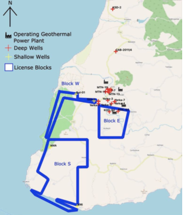 圖1:TTG的地熱(re)開發(fa)準(zhun)(zhun)證,其中藍色(se)邊(bian)界線內為準(zhun)(zhun)證覆蓋區域(E區塊Transmark GPP項目所在地(di))。