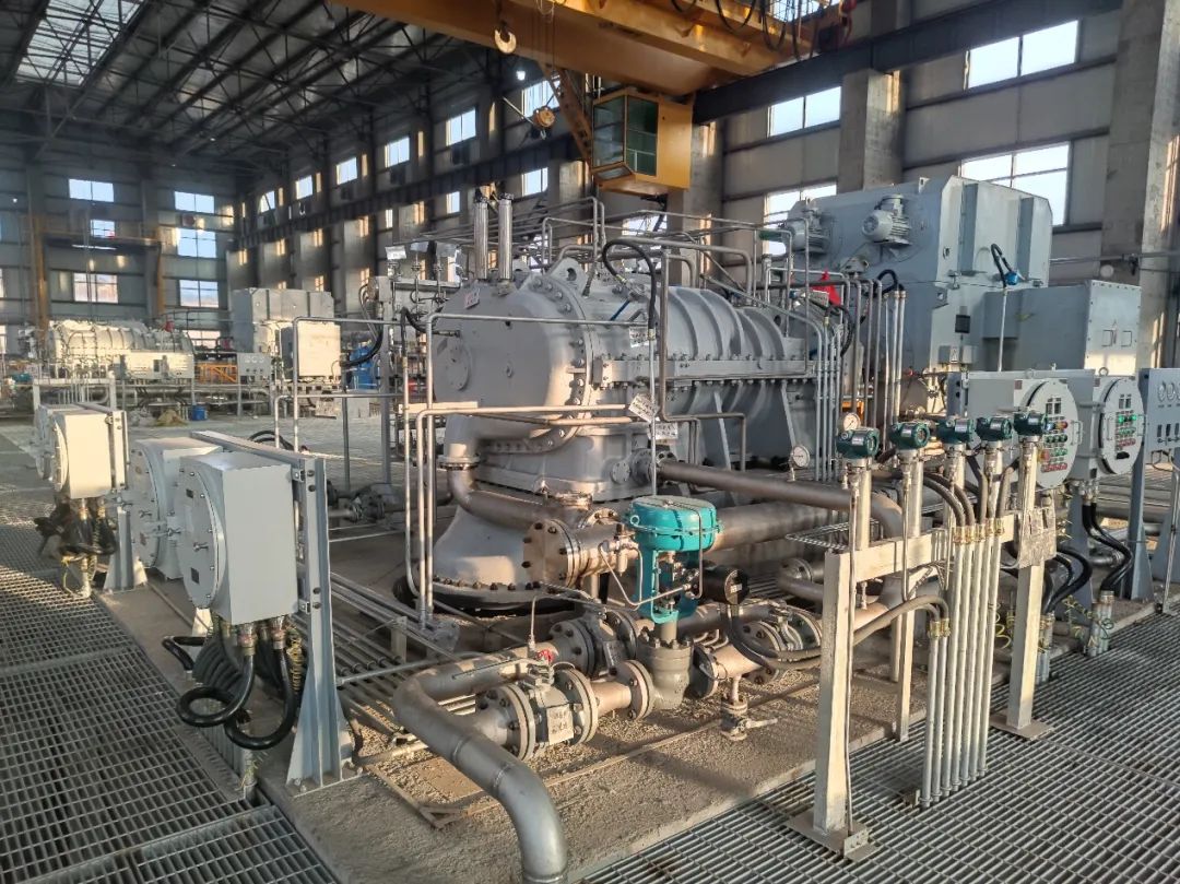 伴隨著國家大力實施“碳達峰、碳中和”和“氫能源回收利用”的發展機遇。開山氣體壓縮機在已有工藝介質氣壓縮多年成熟應用經驗的基礎上,又開發了千立方米流量級別、更大壓比的KSG844型超大流量工藝螺桿壓縮機系列,壓縮機重量近60噸,最大容積流量可達1600m3/min),堪稱“大國重器”。該系列超大流量工藝螺桿壓縮機組是迄今為止國內轉子直徑最大、單機流量最大的工藝螺桿壓縮機,將引領中國工藝螺桿壓縮機行業向“更大、更高”方向發展。